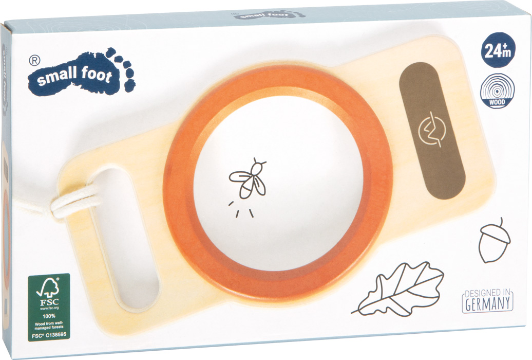 Mit Neugierde die Welt erkunden – mit der speziell für Outdoor-Abenteuer konzipierten Entdeckerlupe ist das ein Kinderspiel! Die robuste, übergroße Outdoorlupe aus FSC® 100%-zertifiziertem Holz bietet neben ihrer 3-fachen Vergrößerungsleistung weitere Features, um Kindern aufregende Naturbeobachtungen zu ermöglichen – ob im Garten, im Park oder auf Entdeckungstouren in der freien Natur. Damit die Lupe auch von kleineren Kindern bequem gehalten werden kann, verfügt sie über einen Griff zum Durchgreifen. Die Kinder-Lupe ist zudem mit einem praktischen Band ausgestattet, mit dem sie am Hosenbund befestigt oder um das Handgelenk getragen werden kann. So haben kleine Naturforscher ihr Vergrößerungsglas stets griffbereit.