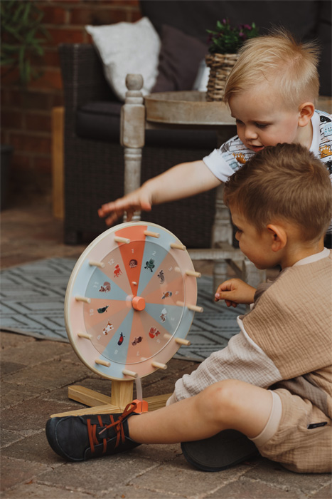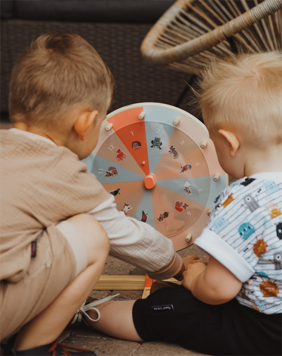 Besonderer Spielspaß mit Eichhörnchen, Igel, Vogel, Maus, Frosch, Hund, Katze & Kaninchen! Das Glücksrad aus hochwertigem Holz kombiniert robustes Design mit vielseitigen Einsatzmöglichkeiten. Die beschreibbare Acrylglasscheibe lässt sich nach Belieben gestalten und bietet mit zwei austauschbaren Folienscheiben für jeden Anlass die passende Optik. Ob als Aktionsspiel für die ganze Familie, bei Gewinnspielen im Kindergarten oder als Highlight auf Kindergeburtstagen – das Glücksrad sorgt für Spaß und Spannung.
