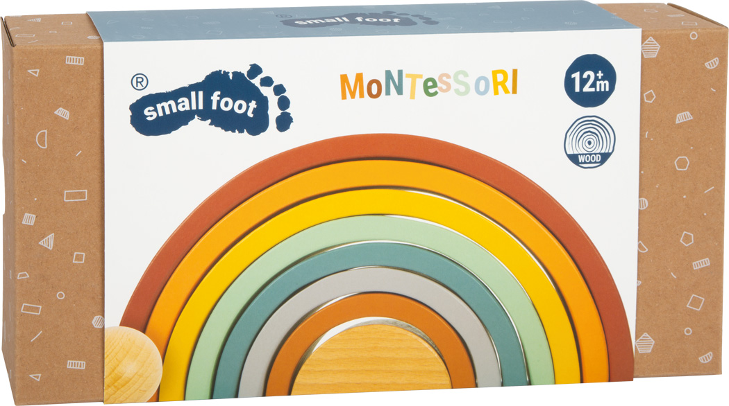 A wooden rainbow is a real multi-talented toy! It allows for free play according to the Montessori teaching method and ensures that there are no boundaries to imagination during play – for children of all ages! And while playing, the youngest children get a first view into the world of colours and learn to sort the colours of the rainbow in the correct order. The Rainbow is also a great decorative item for the nursery and is a true eye-catcher.