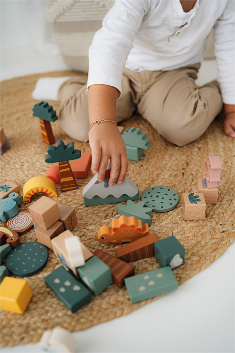 La creatividad de los niños a la hora de construir y apilar no tiene límites. Bloque a bloque, se crea en un abrir y cerrar de ojos un hábitat para T-Rex, Stegosaurus, Triceratops y compañía. Los juguetes de la línea "Dino" están inspirados en las criaturas prehistóricas que siempre han fascinado a grandes y pequeños. Los bloques de construcción fomentan la motricidad, estimulan la creatividad y la imaginación de los niños y les animan a aprender más sobre la naturaleza y la historia de los gigantes prehistóricos.