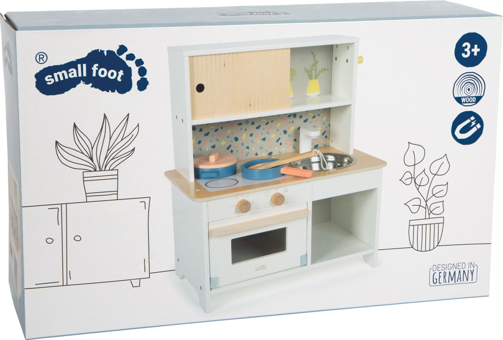 La cuisine compacte pour enfants au look granito terrazzo allie un design peu encombrant à de nombreuses possibilités de jeu. Bien équipée et prête à l'emploi elle est donc parfaite pour les petits appartements ou comme deuxième cuisine chez papy et mamie. Les enfants apprennent à utiliser les ustensiles de cuisine courants en s'amusant et renforcent leurs compétences sociales en jouant ensemble.
