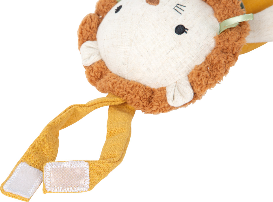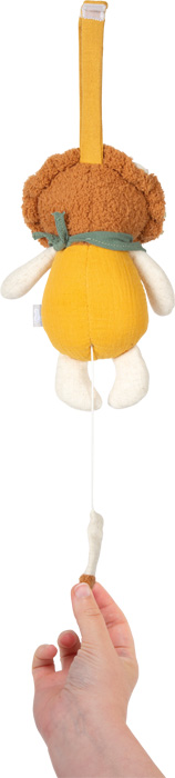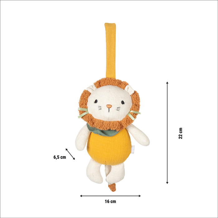 Gentle sounds for sweet dreams! This lovingly designed and cuddly soft music box in lion design is not only a soothing sleep aid, but also a stylish eye-catcher in the nursery. With its pleasantly soft feel, high-quality muslin fabric and cheerful lion look, it will quickly become a favourite for babies and toddlers when falling asleep, cuddling or resting. Whether above the cot, in the pram or on the changing table – thanks to the practical hanging loop, ‘Little Lion’ is always there. Pull the string to hear the soothing German lullaby "Weißt Du, wieviel Sternlein stehen?" ("Do you know how many stars there are?").