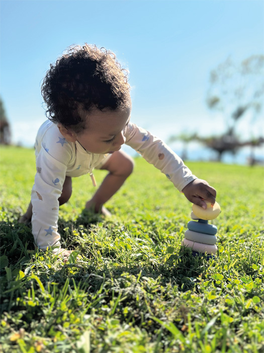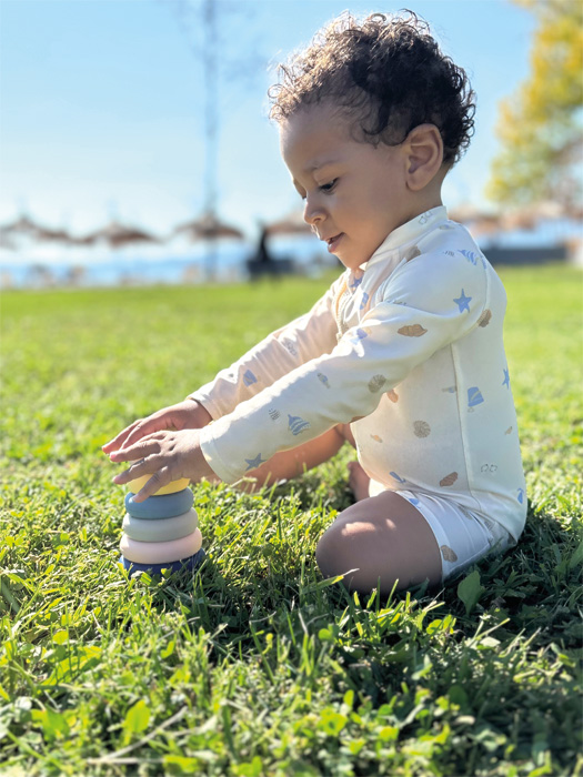 The silicone stacking tower is a versatile motor skills toy that helps babies and toddlers take important developmental steps. The 6 tower elements of different sizes can be safely stacked on top of each other without a centre bar - a plus in safety and an ideal introduction to the world of stacking. At the same time, creativity and imagination are stimulated when the elements are freely combined and restacked. Whether as a tower in the nursery, as a toy in the sandpit or as bathing fun in the bathtub: this silicone stacking tower is robust, flexible and versatile, making it perfect for everyday use with young explorers.