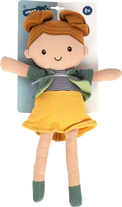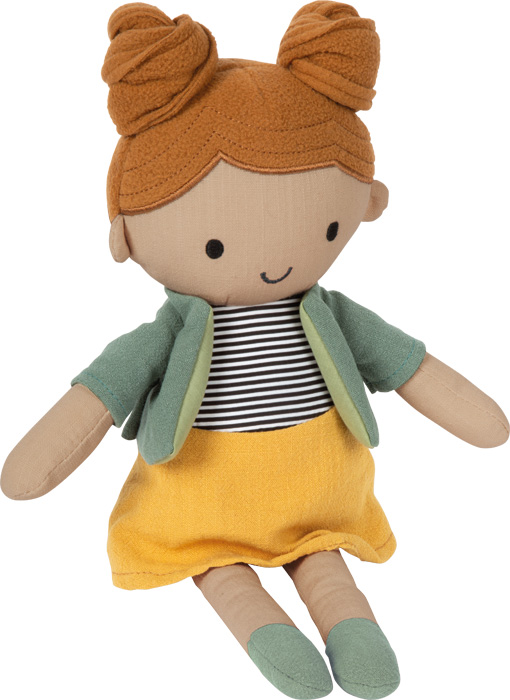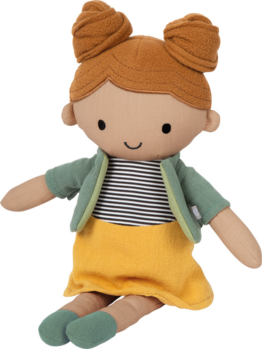 Le bambole di stoffa sono molto più di un semplice giocattolo: diventano amiche, confidenti, fonte di conforto e stimolano la creatività nella vita quotidiana dei bambini. Maya unisce la morbidezza e la sofficità di un peluche a una struttura abbastanza solida e flessibile, che la rende facile da maneggiare e perfetta per emulare situazioni di vita quotidiana, elaborare le emozioni e acquisire competenze sociali. Maya indossa una gonna gialla, una maglia a righe e una giacca facilmente rimovibile, che permette di allenare la motricità fine e imparare a vestirsi autonomamente. Pratica e resistente, la bambola può essere lavata facilmente a mano senza perdere la forma, così è sempre pronta ad accompagnare i bambini in infinite ore di gioco.