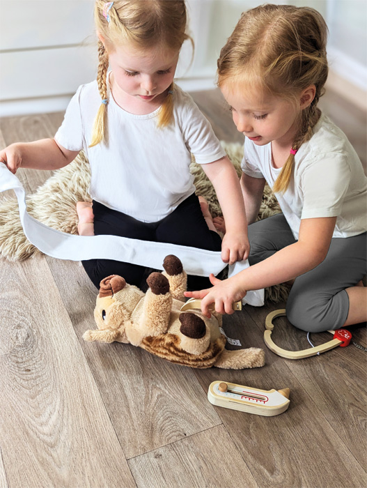 Questo poliedrico kit è perfetto per giochi di ruolo, che ruotano attorno al mondo di dottori, pazienti e infermieri. I realistici accessori risvegliano l'interesse e la curiosità dei bambini, che così imparano in maniera attiva. I bambini potranno giocare al dottore con bambole, peluche, amici, fratelli e sorelle, riproducendo importanti situazioni reali quali una "visita medica", "misurare la febbre" o "mettere una benda", rafforzando così la fiducia e le capacità linguistiche. L'utilizzo degli strumenti in legno favorisce, inoltre, lo sviluppo motorio. Questo kit è perfetto in casa, ma grazie alle sue dimensioni compatte può anche essere portato in giro, ad esempio in vacanza, all'asilo o in sala d'attesa.